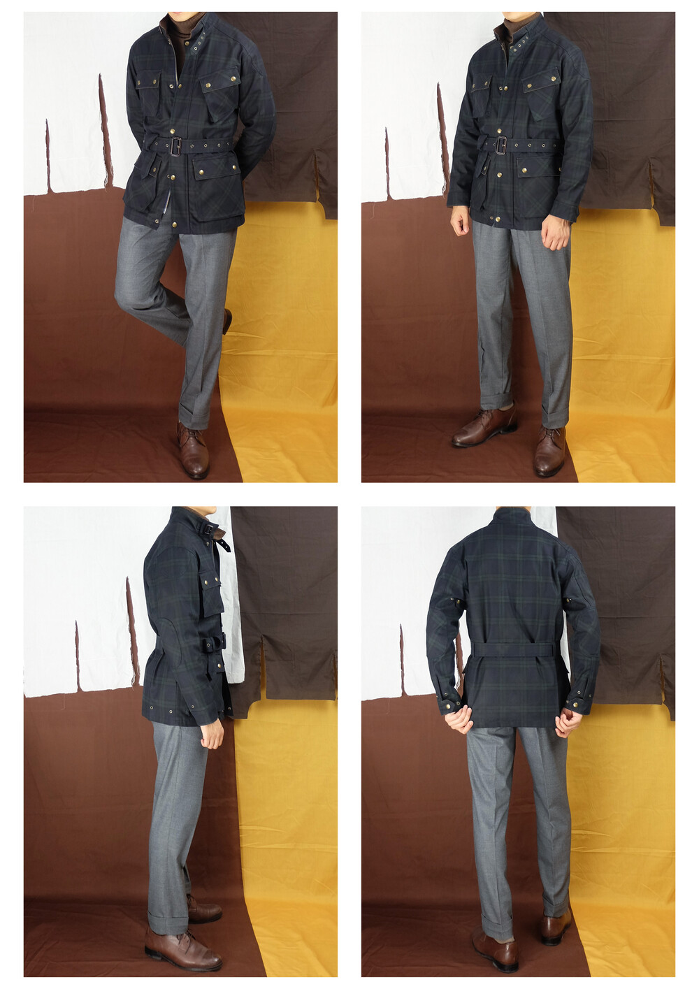 · '차이나 카라, 플랩 포켓 덮개, 커프스의 안쪽'을 골덴 원단으로 배색 처리