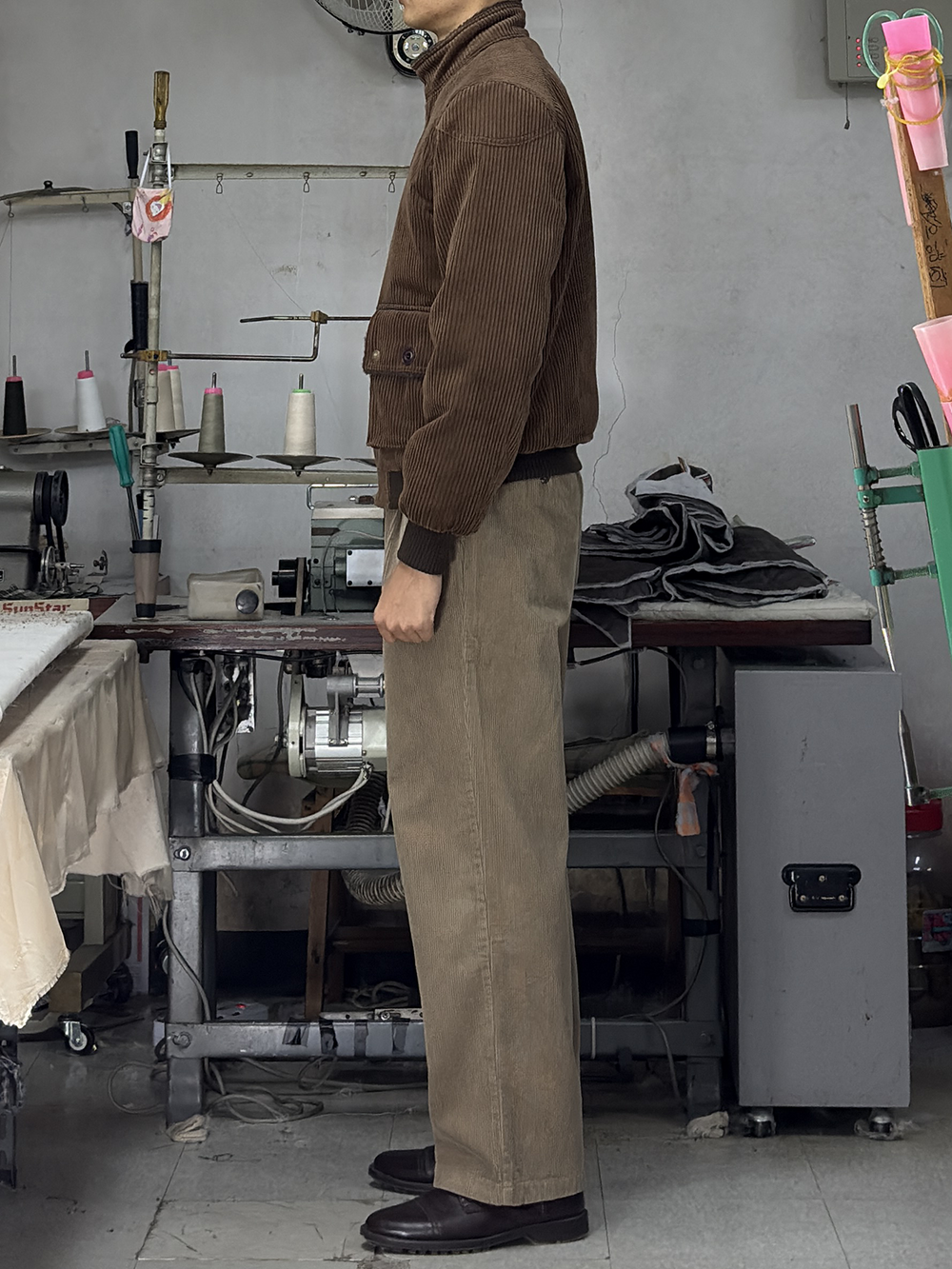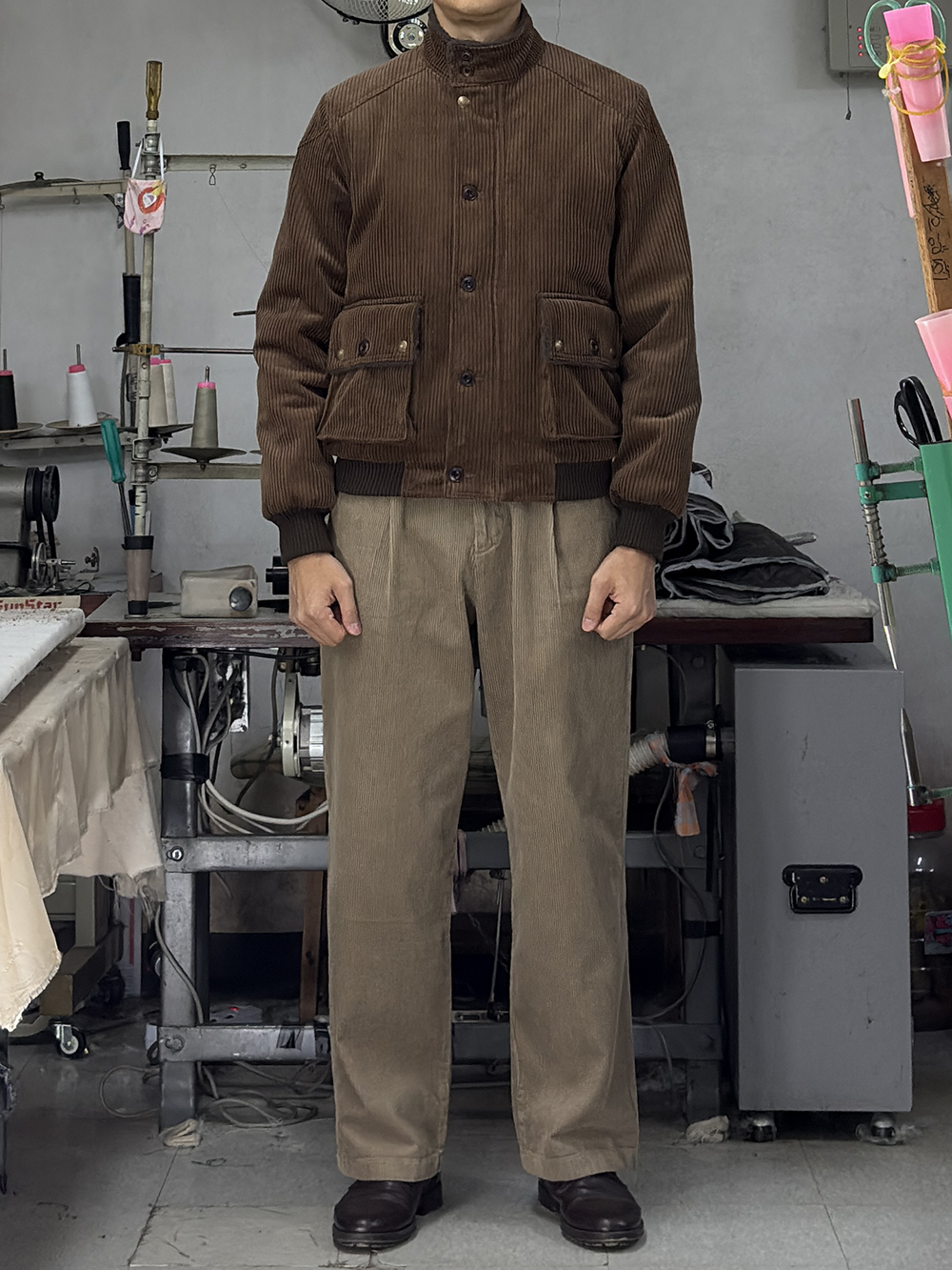 · '차이나 카라 & 플랩 포켓 덮개의 안쪽'을 덤브링 원단으로 배색 처리