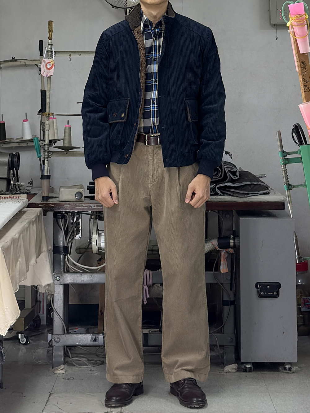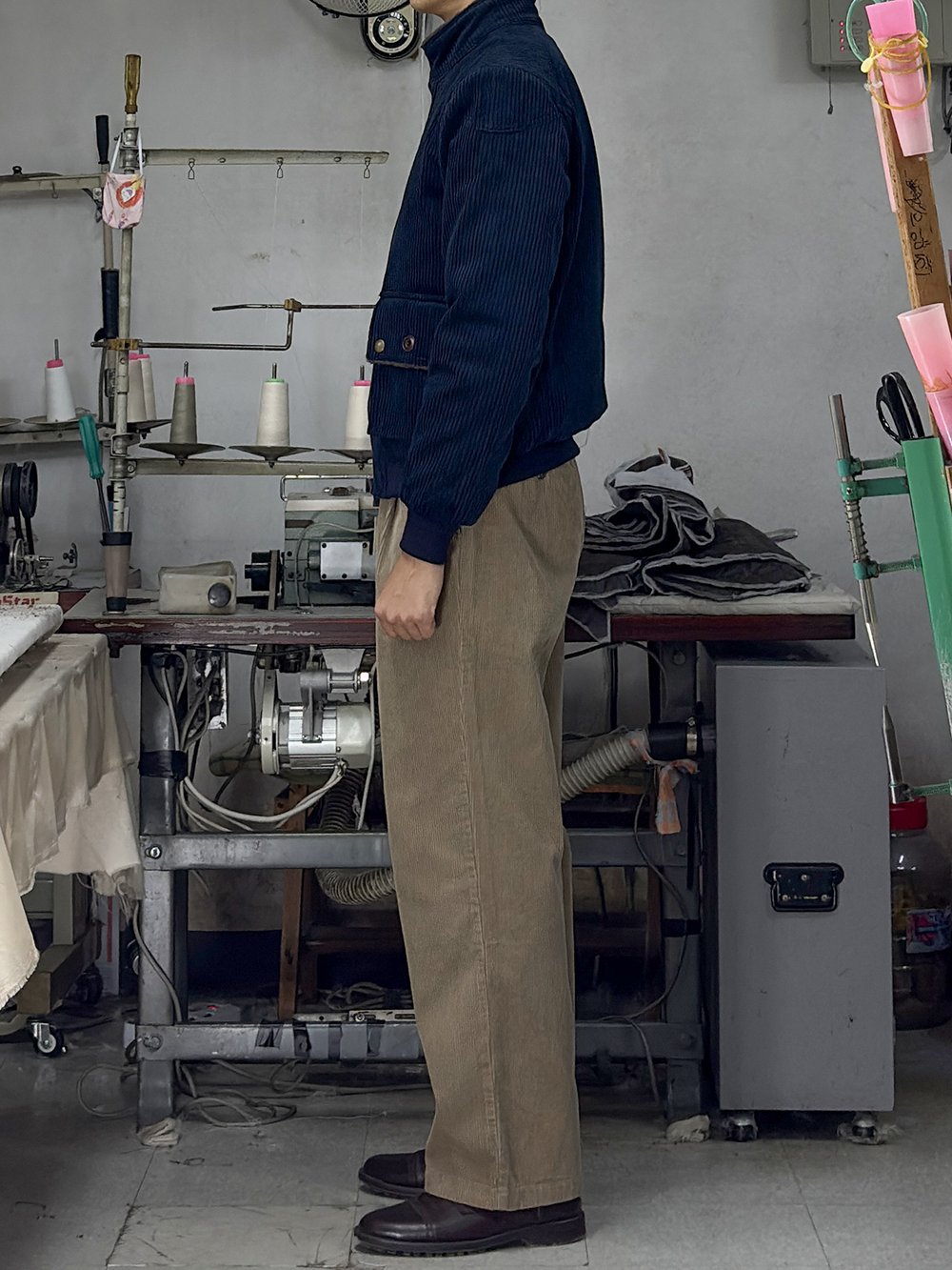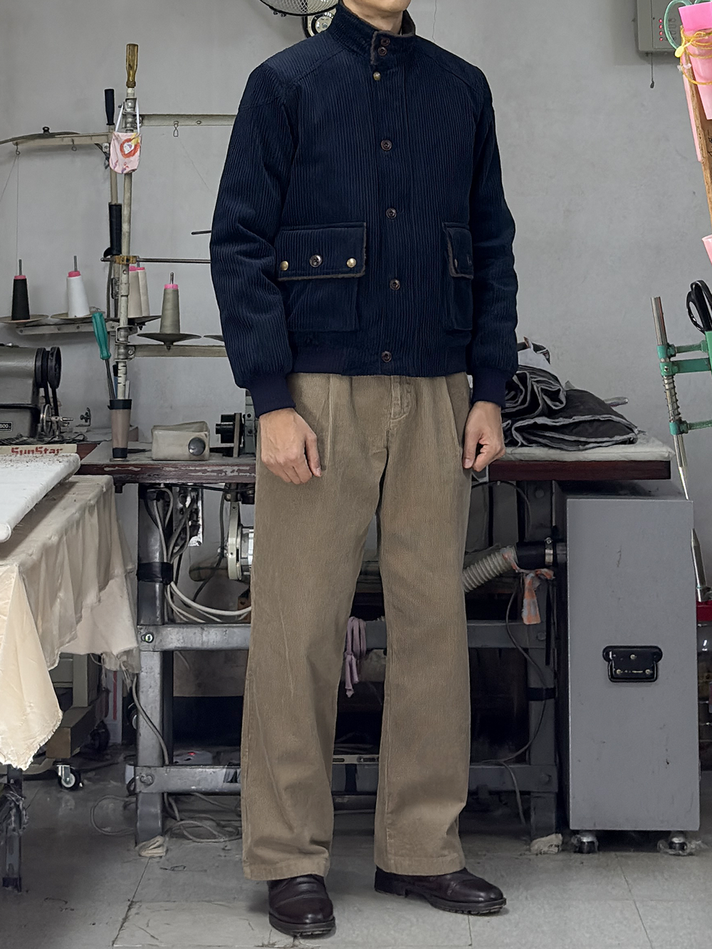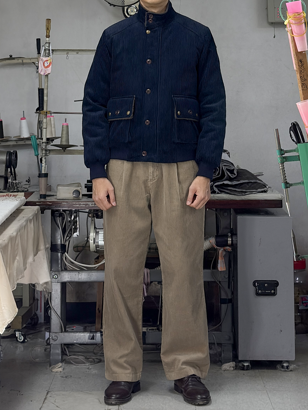 · '차이나 카라 & 플랩 포켓 덮개의 안쪽'을 덤브링 원단으로 배색 처리