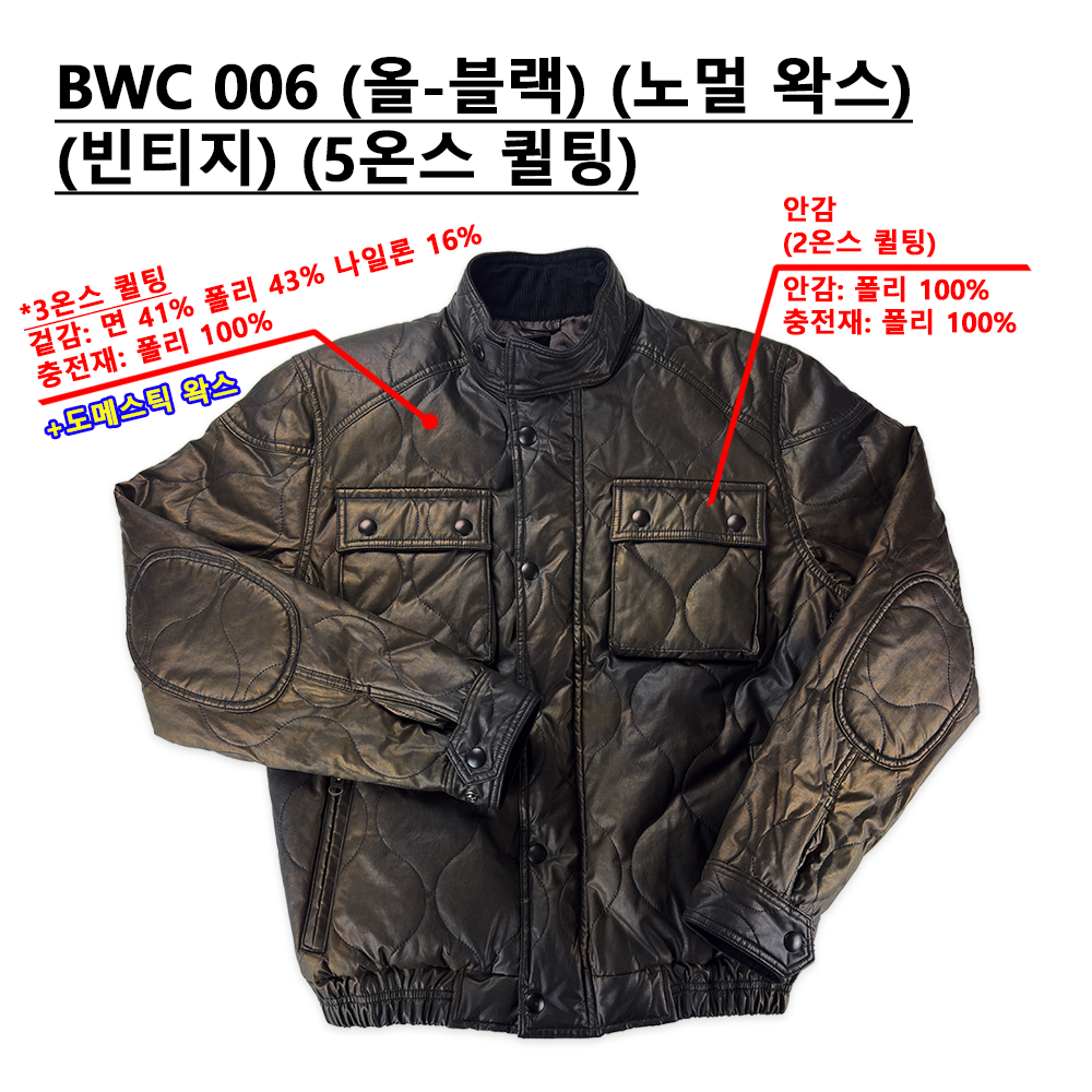 BWC 006 (올-블랙) (노멀 왁스) (빈티지) (5온스 퀼팅)