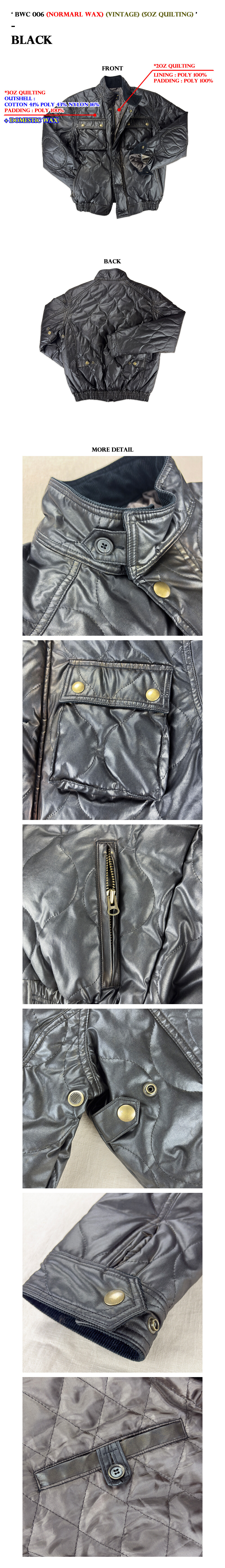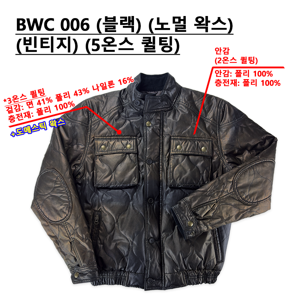 BWC 006 (블랙) (노멀 왁스) (빈티지) (5온스 퀼팅)