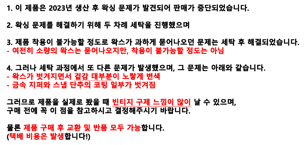 구매 전, 제품 페이지 상단에 안내된 내용을 꼭 읽어주세요! 겉감의 왁스가 벗겨져 노랗게 변한 빈티지 구제 느낌이 매우 강합니다!!