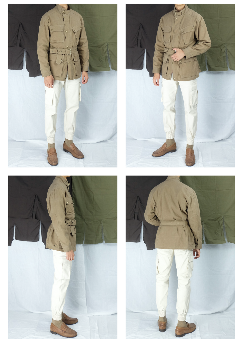 · '차이나 카라, 플랩 포켓 덮개, 커프스의 안쪽'을 골덴 원단으로 배색 처리