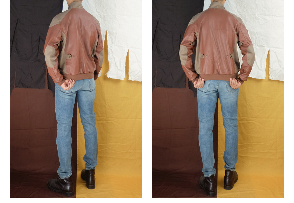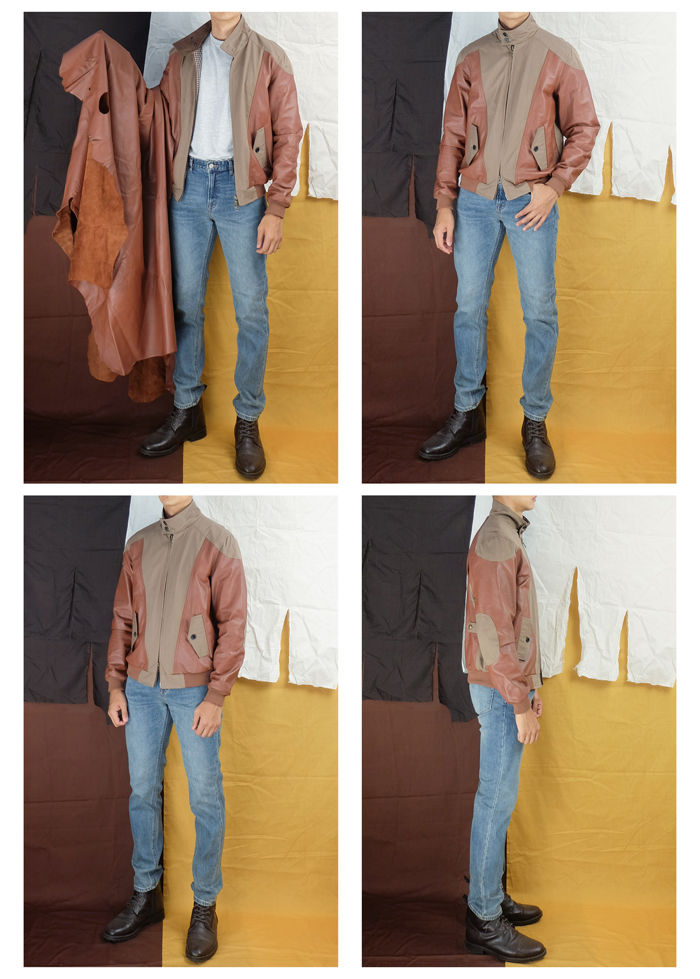 · '차이나 카라 & 플랩 포켓 덮개의 안쪽'을 골덴 원단으로 배색 처리