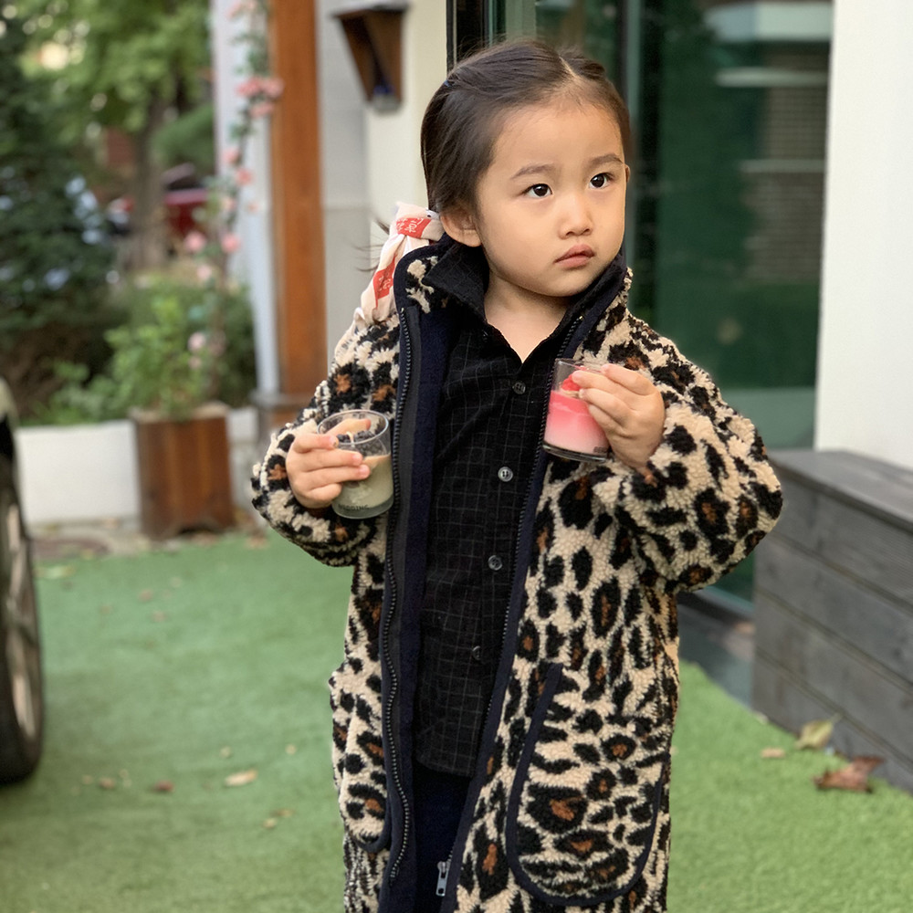 덤블 호피 롱점퍼 (진베이지)