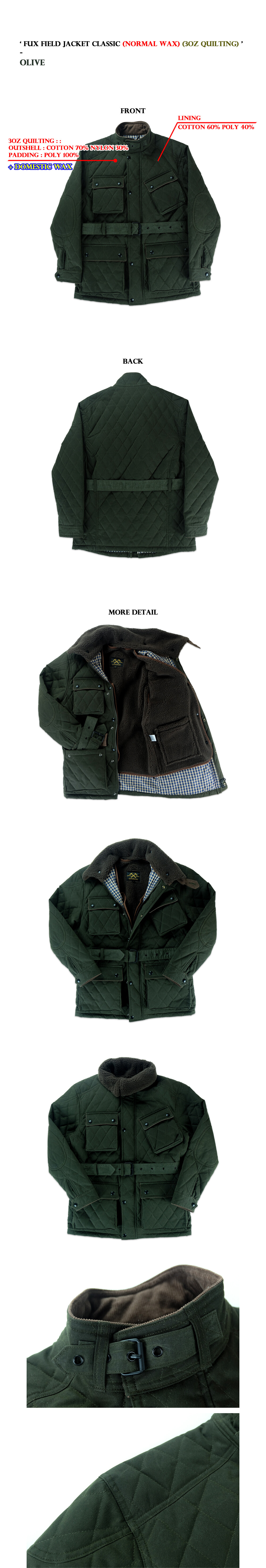 FUX 필드 자켓 클래식 (올리브) (노멀 왁스) (3온스 퀼팅)