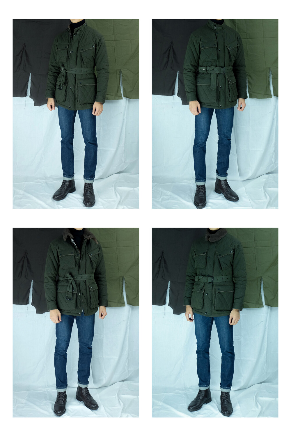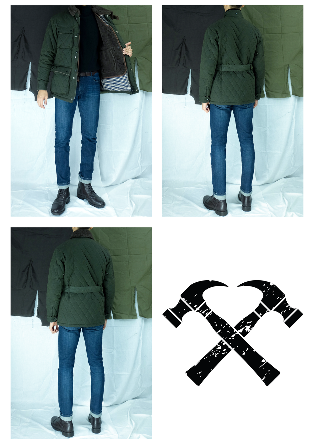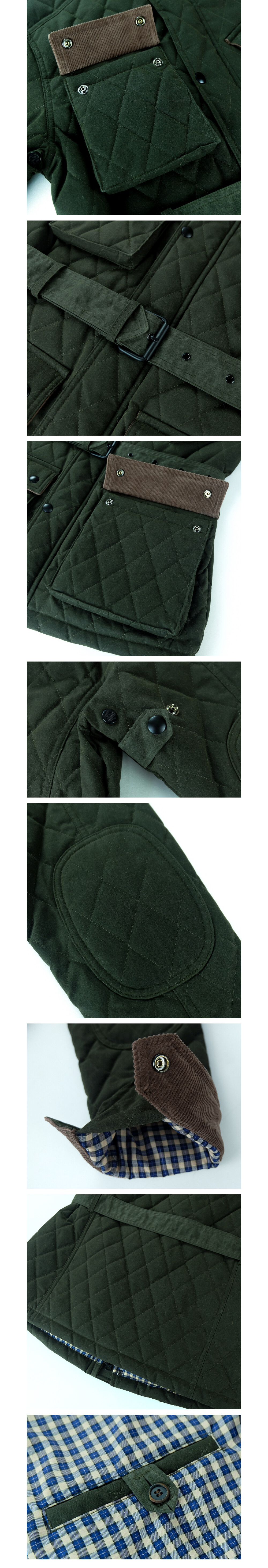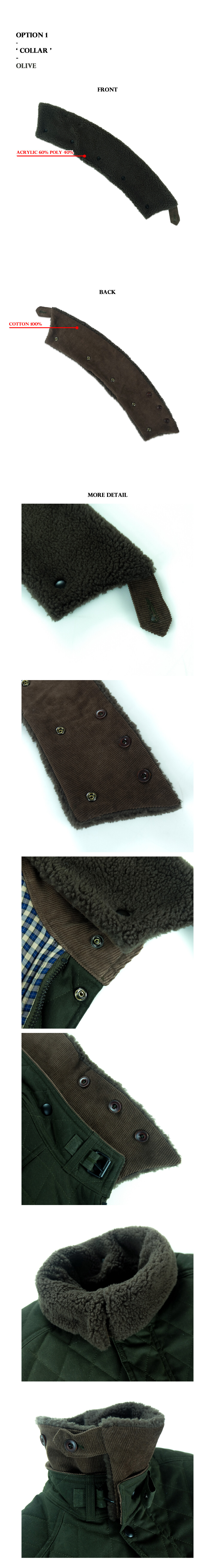 · '차이나 카라, 플랩 포켓 덮개, 커프스의 안쪽'을 골덴 원단으로 배색 처리