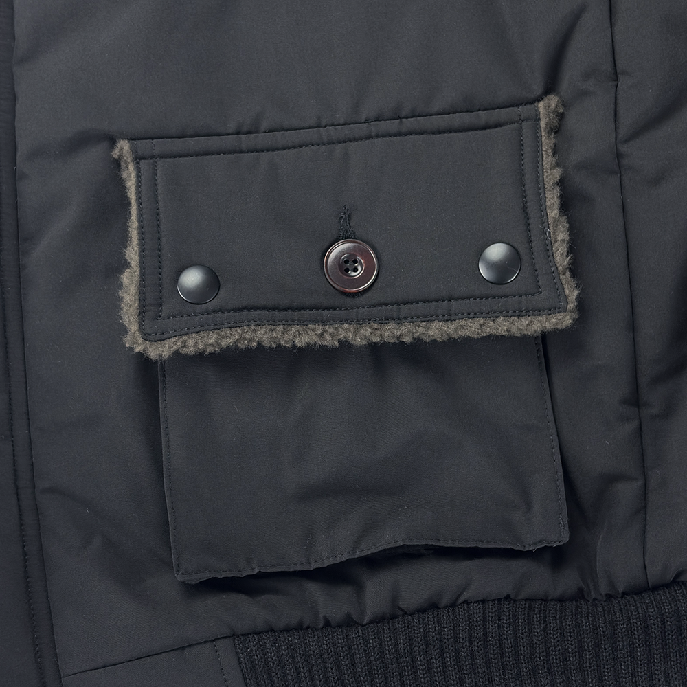 · '차이나 카라 & 플랩 포켓 덮개의 안쪽'을 덤브링 원단으로 배색 처리