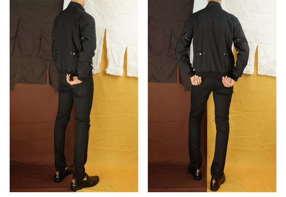 · '차이나 카라 & 플랩 포켓 덮개의 안쪽'을 골덴 원단으로 배색 처리