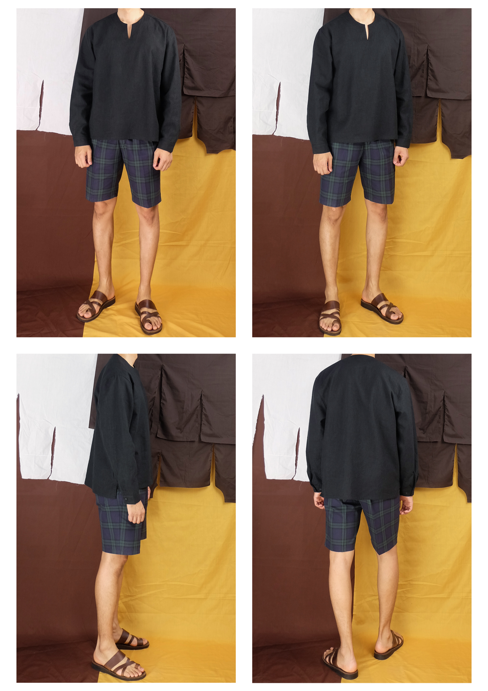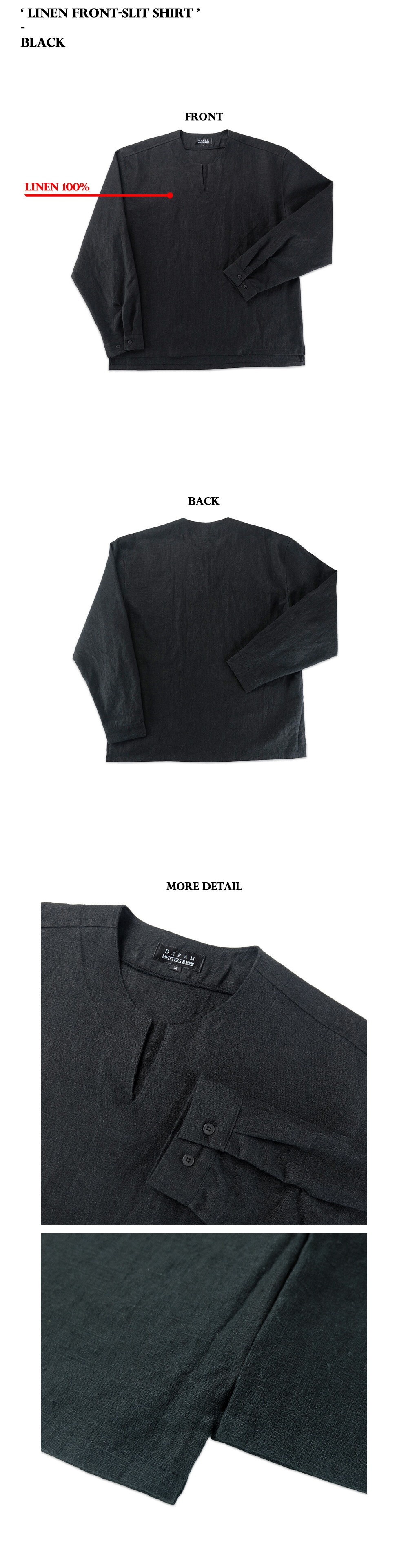 린넨 앞트임 오버핏 셔츠 (블랙)