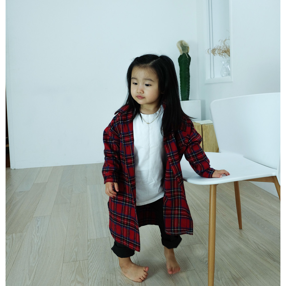 타탄체크 롱 남방 (레드)