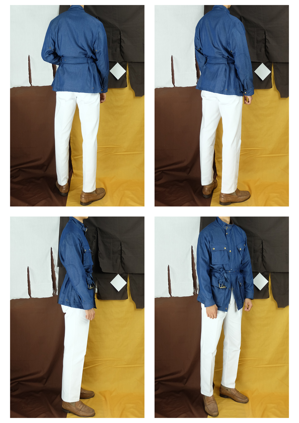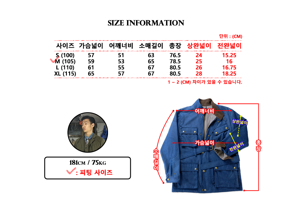 · '차이나 카라, 플랩 포켓 덮개, 커프스의 안쪽'을 골덴 원단으로 배색 처리